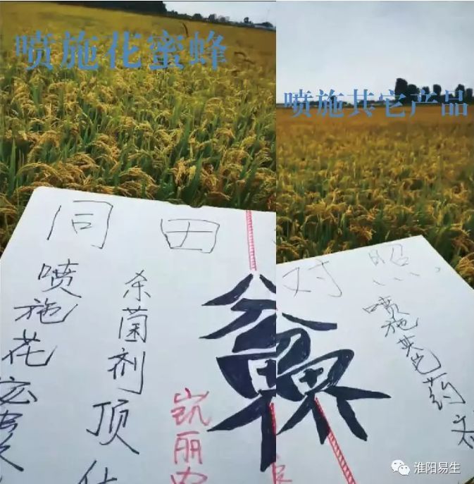2019年9月15日,我們易生科技售后服務(wù)組來(lái)到了遼寧省沈陽(yáng)市854農場(chǎng)觀(guān)摩噴施花蜜蜂的水稻效果。同一塊田地,噴施花蜜蜂與噴施其它產(chǎn)品的水稻進(jìn)行對比,明顯的看出,噴施花蜜蜂的水稻顏色金黃光亮,穗大穗勻,沒(méi)有一個(gè)倒伏!而噴施其它產(chǎn)品的水稻大面積幾乎全部倒伏,收割機都收不起來(lái)!